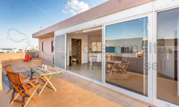 Luxuriously finished unique two-bedroom penthouse situated in a very central part of San Gwann. Property consists of an open kitchen/living/dining area, main bathroom, two double bedrooms main having ensuite facilities. Complementing this property is a large wide front terrace ideal for entertaining. Fully equipped and air conditioned. Not to be missed.