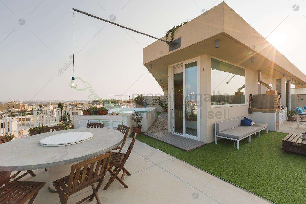A state of the art designer furnished penthouse, situated in a good area of San Gwann, close to all amenities. Property comprises an entrance hall, three double bedrooms, main bathroom, shower ensuite, walk-in wardrobe, laundry room and surrounding terraces. This penthouse enjoys 270 degrees views of Malta and boasts maximum natural day light. All rooms lead directly onto the terrace, which, of course, is the perfect way of entertaining with an outdoor kitchen, a pizza oven, chill out area and pool enjoying unobstructed views. Property also complements a two-car interconnecting garage.