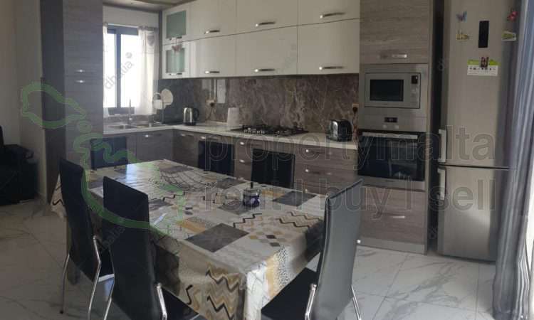 Three-bedroom fifth-floor penthouse situated in the heart of San Gwann close to all amenities. Property consists of an open-plan kitchen/living/dining area leading onto a spacious front terrace, hallway, guest toilet, main bathroom, two double bedrooms and a single bedroom. Property is equipped with air conditioning throughout and fully equipped with modern day luxuries.