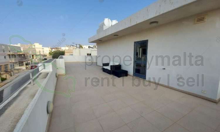 Modern, one-bedroom studio penthouse, fantastically located in a quiet setting on the border of Naxxar in a very quiet upmarket residential area of San Pawl tat-Targa, close to the city centre and bus stops which cater for all the daily amenities and facilities of the Naxxar residents. Layout comprises an open plan and spacious room with a fully equipped kitchen/dining, living/double-bed and shower room. The bed is a proper double bed (with underlying storage space) which can also be used as a “chaise longue” when relaxing, reading, watching television. Complementing this property is an approximately 100 square metre terrace with fantastic unobstructed views of Bugibba, St. Paul`s Islands and beyond. Fully equipped and air-conditioned.