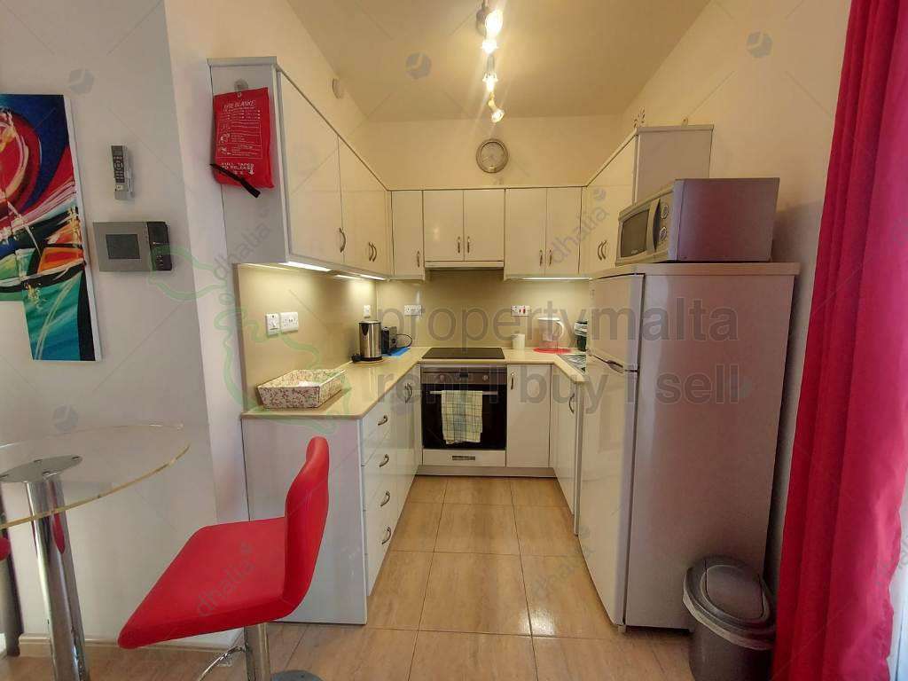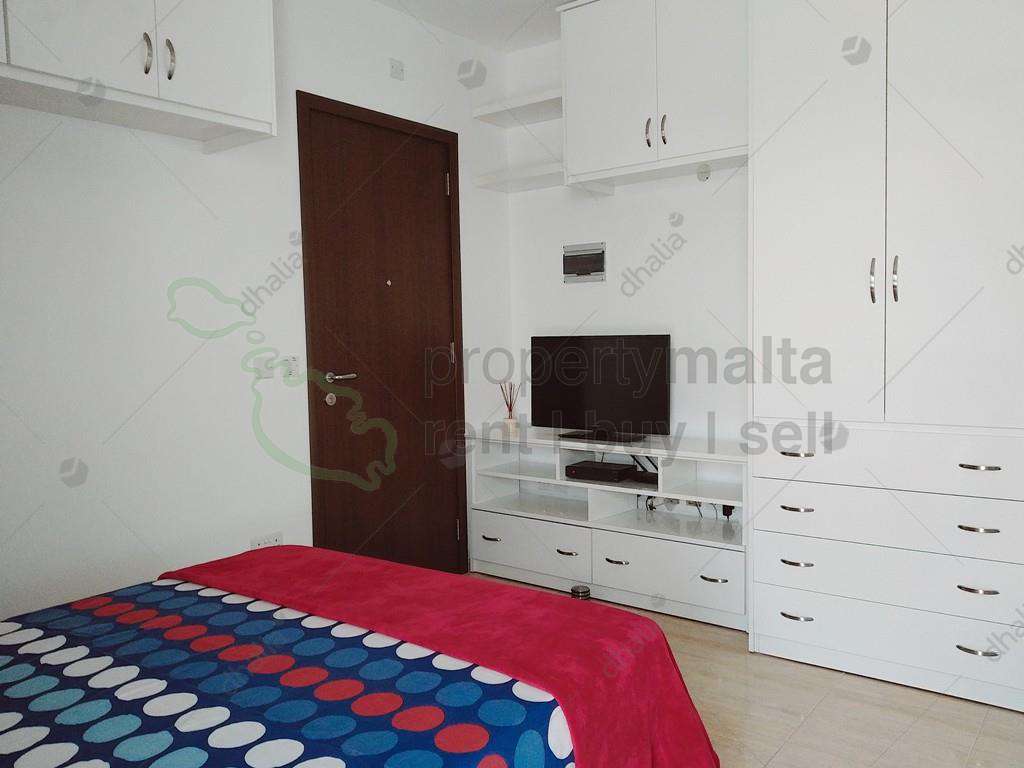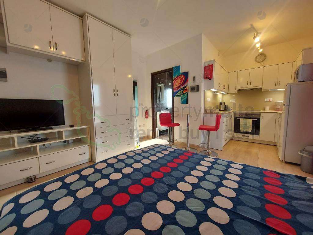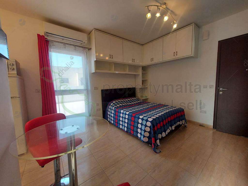 Modern, one-bedroom studio penthouse, fantastically located in a quiet setting on the border of Naxxar in a very quiet upmarket residential area of San Pawl tat-Targa, close to the city centre and bus stops which cater for all the daily amenities and facilities of the Naxxar residents. Layout comprises an open plan and spacious room with a fully equipped kitchen/dining, living/double-bed and shower room. The bed is a proper double bed (with underlying storage space) which can also be used as a “chaise longue” when relaxing, reading, watching television. Complementing this property is an approximately 100 square metre terrace with fantastic unobstructed views of Bugibba, St. Paul`s Islands and beyond. Fully equipped and air-conditioned.