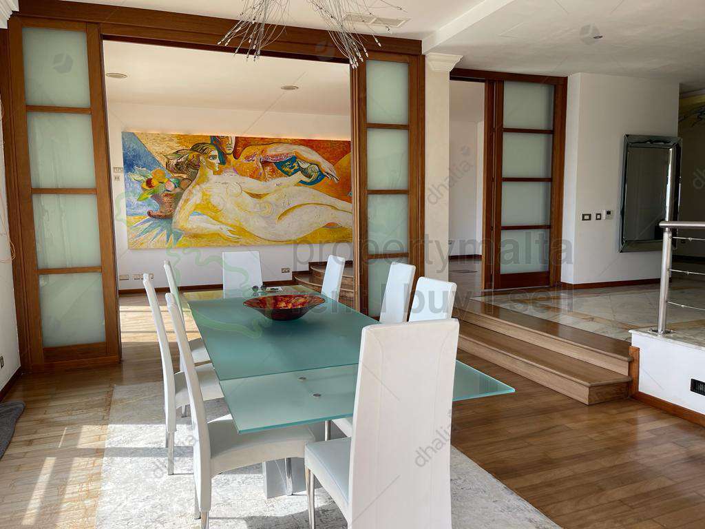 A designer finished penthouse, forming part of Portomaso Complex, enjoying magnificent views of the Marina of the open sea and of the Sliema coast. Layout comprises an entrance hall, a fitted kitchen/breakfast, living room, lounge/dining, guest toilet, utility room, three double bedrooms (all having bathroom and shower en suite), a good sized terrace having a Jacuzzi and a sauna. A car space is included.