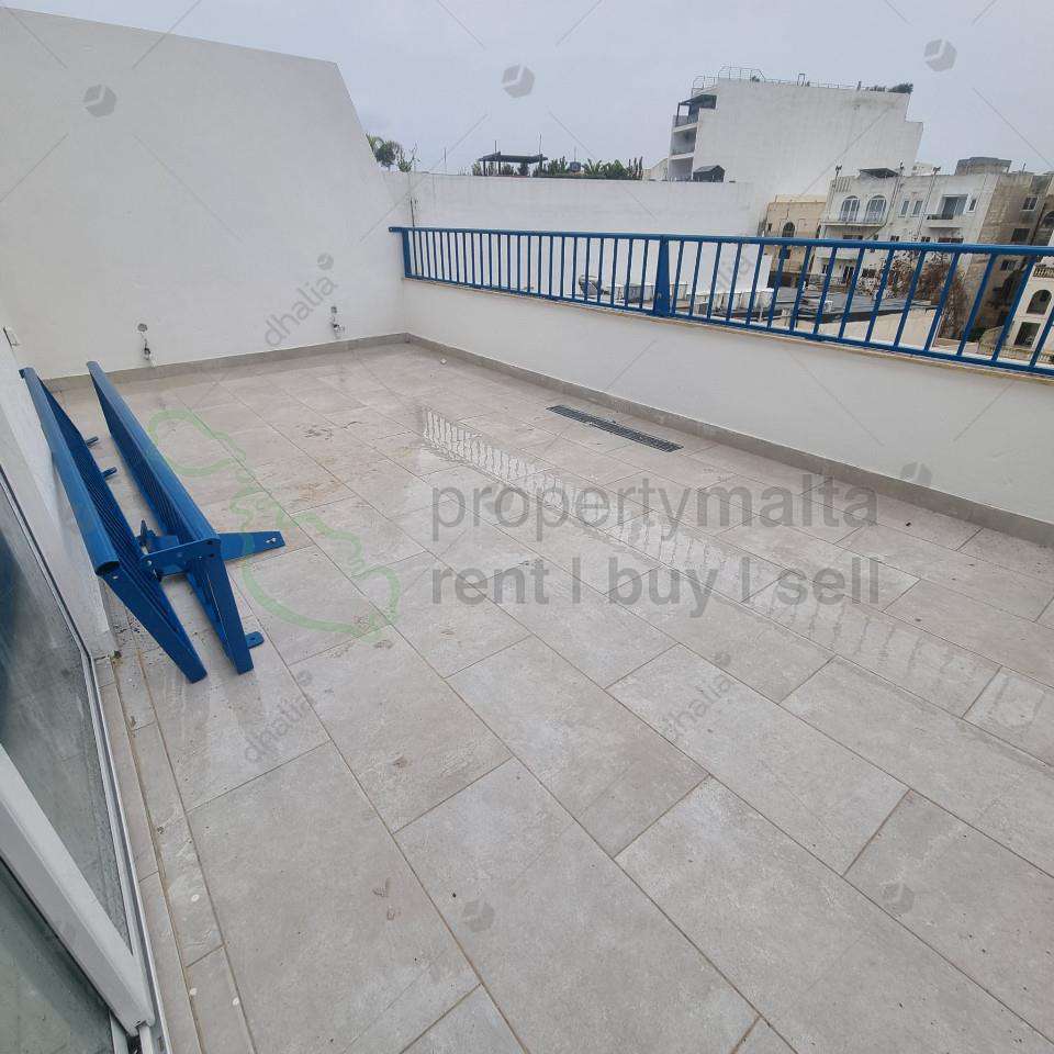 A brand new two double bedroom penthouse facing Balluta Valley with ODZ and sea views. The property consists of two bedrooms, two bathrooms, a front terrace and an open plan kitchen living dining connected with a back terrace facing valley and sea views. Viewing is a must to appreciate it. Optional garages available in the same block.