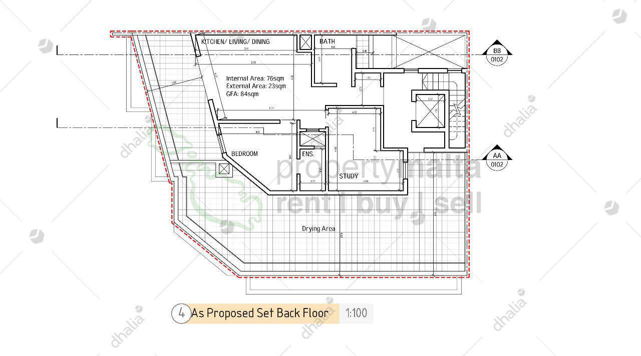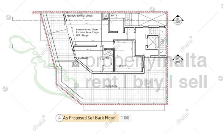 New apartments and penthouses currently being finished in St Paul`s Bay selling finished excluding bathrooms and doors, served with lift. This penthouse consists of open-plan kitchen/living/dining room leading to a front terrace, main bedroom with ensuite, main bathroom and a study room. Freehold.