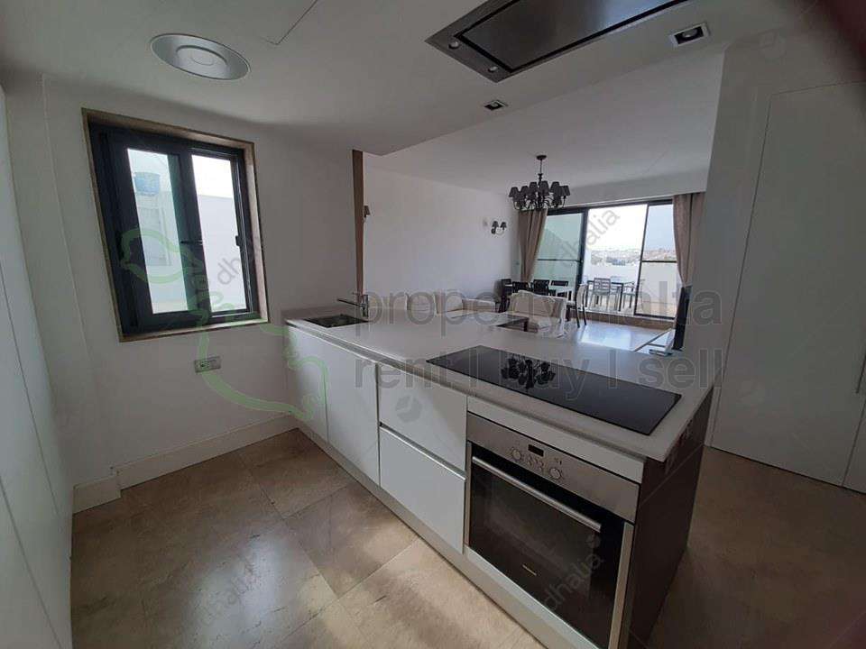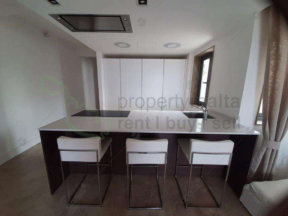 Very bright and airy luxuriously furnished two double bedrooms penthouse for rent in a very quiet area of Swatar. The property consists of open plan kitchen, living, dining leading to spacious front terrace south/east facing, box room with washing machine and tumbles dryer, main bathroom two double bedrooms main with ensuite shower and back terrace. This property is VRF fully air-conditioned, the flooring is marble Gianco Antico and bathrooms as well. One-car garage included in the price.
