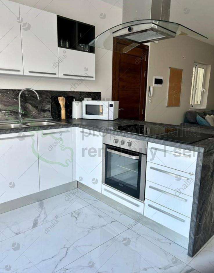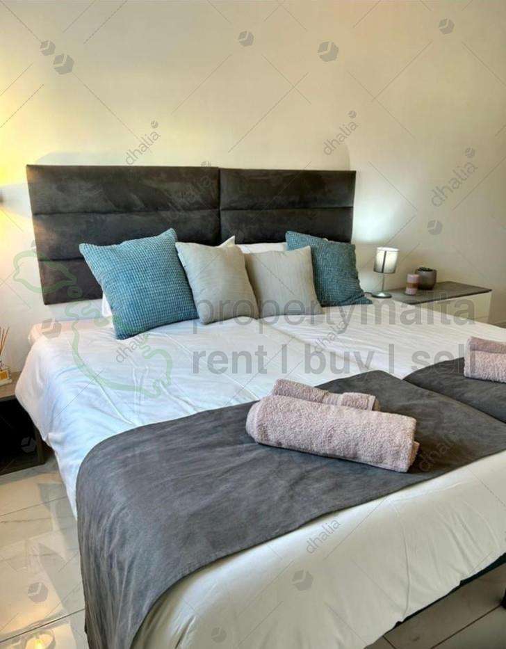 Bright one-bedroom and one-bathroom penthouse featuring an open plan leading to a front terrace, a study room, and a back terrace available for lease.
