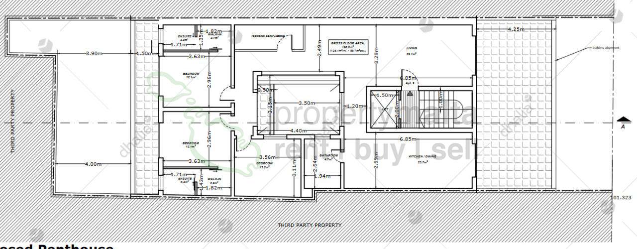 A new highly finished three-bedroom penthouse located in a desirable area of Ta L`Ibragg, enjoying open views from its large front terrace. The layout features a kitchen/dining area leading to a front terrace and a separate living area also leading to the front terrace. Further in are two bedrooms both with walk-in wardrobes and en suites with an additional back terrace. Completing the property is another bedroom, a bathroom and a box room. Selling finished, excluding bathrooms and doors. Optional underlying garage.