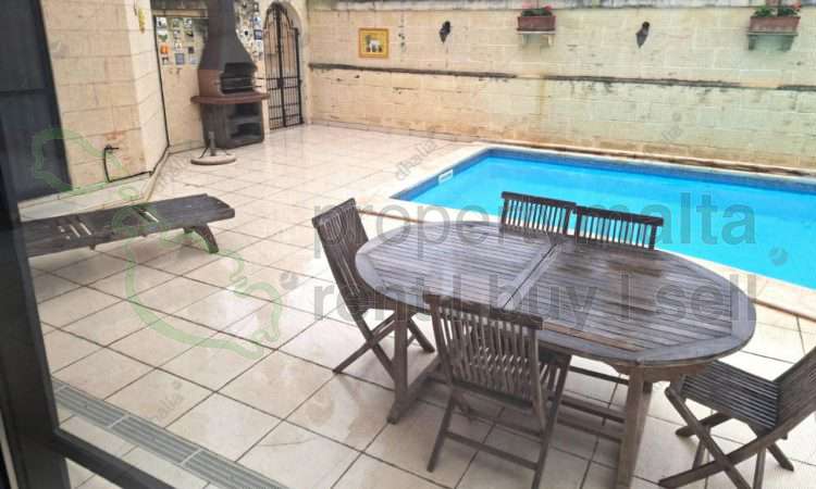 A highly desirable three-bedroom villa situated in the sought-after area of Attard, enjoying a welcoming front garden and an impressive eight-car garage. This elegant home features a spacious entrance hall leading to an open plan kitchen/dining lounge with television, leading to a swimming pool, deck area with barbeque perfect for entertaining and outdoor living. The property comprises three double bedrooms, bathrooms, and a separate ground-floor office. Property is available immediately.