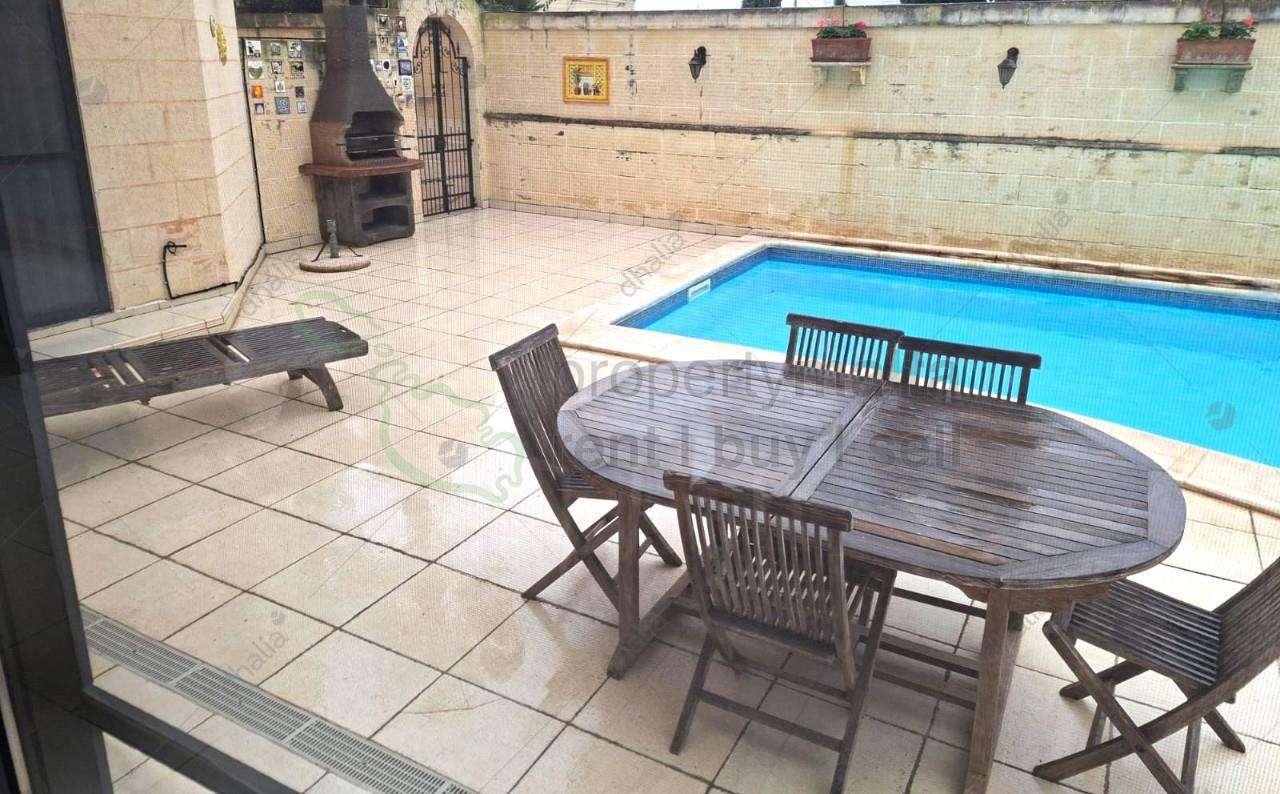 A highly desirable three-bedroom villa situated in the sought-after area of Attard, enjoying a welcoming front garden and an impressive eight-car garage. This elegant home features a spacious entrance hall leading to an open plan kitchen/dining lounge with television, leading to a swimming pool, deck area with barbeque perfect for entertaining and outdoor living. The property comprises three double bedrooms, bathrooms, and a separate ground-floor office. Property is available immediately.
