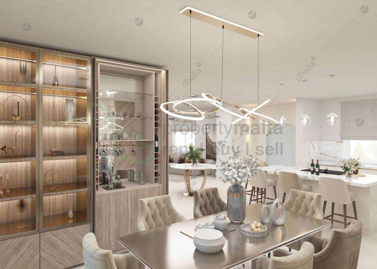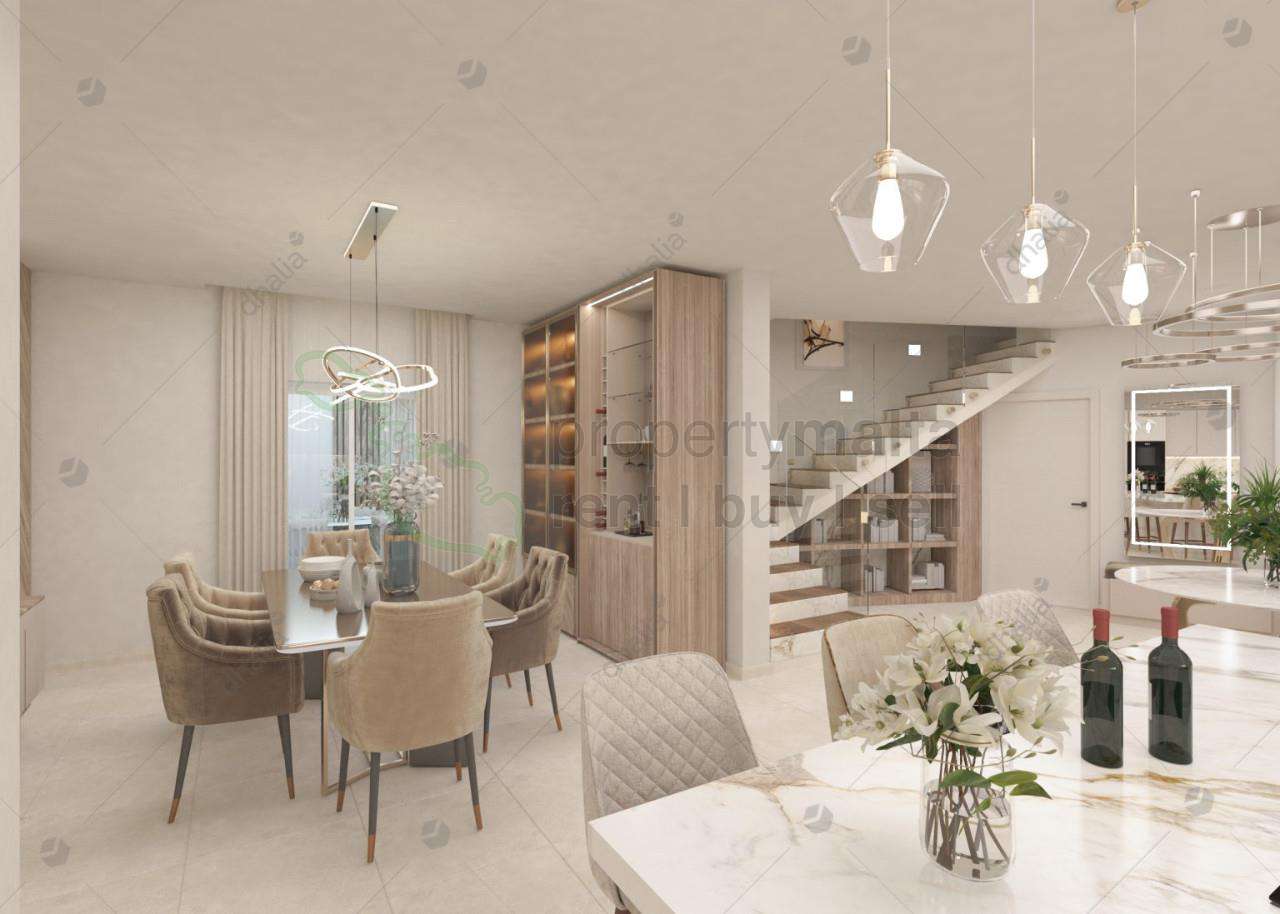 Sale of a newly structurally altered, semi-detached Villa. The new layout will feature an entrance hall, an open plan with a separate living area and a guest bathroom. A staircase leads to a landing which serves three double bedrooms, one with an en suite, a family bathroom and a washroom at roof level. The house has a surrounding front garden, a garage and a pool at the back.