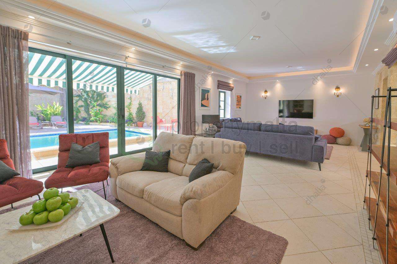 A lovely, spacious fully furnished semi-detached villa, located in Lija, Malta. Comprising four bedrooms, all of which enjoy an ensuite bathroom and two of which also have walk-in wardrobes. Spread over four floors the house includes a large living room, dining room and kitchen enjoying