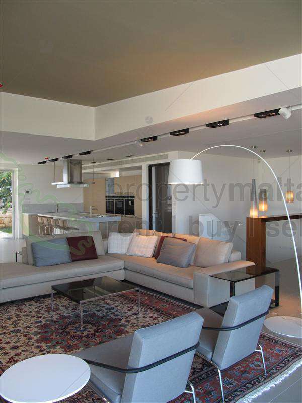 The ultimate leisure villa set on two floors with swimming pool, panoramic seaviews, garden and state of art designer finish. This outstanding property lies in one of Malta`s most elite locations and is to be leased fully furnished by top quality Italian designers. This semi-detached residence benefits from high ceilings, ample natural light, massive living area and kitchen/dining combined all overlooking its own private swimming pool and deck. On the lower level one finds three master bedrooms, each with their own walk in closet and bath/shower room, overlooking its own private garden. Furthermore, an interconnecting garage and car port makes this property a dream home.