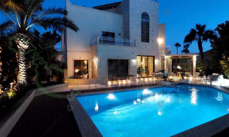 Victoria Gardens – A rare opportunity to acquire a wide-fronted semi-detached villa in this exclusive and tranquil area. The property welcomes you with a grand entrance hall leading to a study, ideal as a home office or easily convertible into a fourth bedroom, along with a guest bathroom for added convenience. Further inside is an open-plan layout that overlooks a sprawling 280-square-metre pool area, featuring a fully fitted kitchen, a spacious dining and living area, and a separate formal sitting and dining room. Upstairs are three generously sized double bedrooms all enjoying access to a terrace, with the master bedroom also benefiting from an en suite. At the roof level, a washroom enjoys distant sea views, while the basement level features a spacious five-car garage. Additionally, a self-contained flatlet, complete with a kitchenette, bathroom, and cinema room, with direct access to the pool area. This exceptional home must be seen to be truly appreciated.