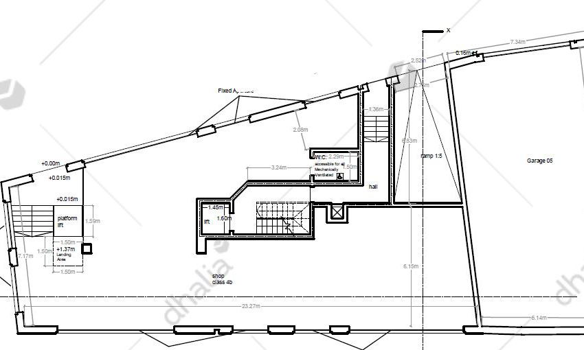 Showroom on a main street spread over three floors served with lift with underlying four car garage finished to high standards.