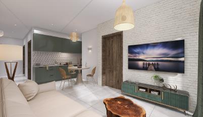 (with yard at first-floor level), and a one-bedroom plus study penthouse.