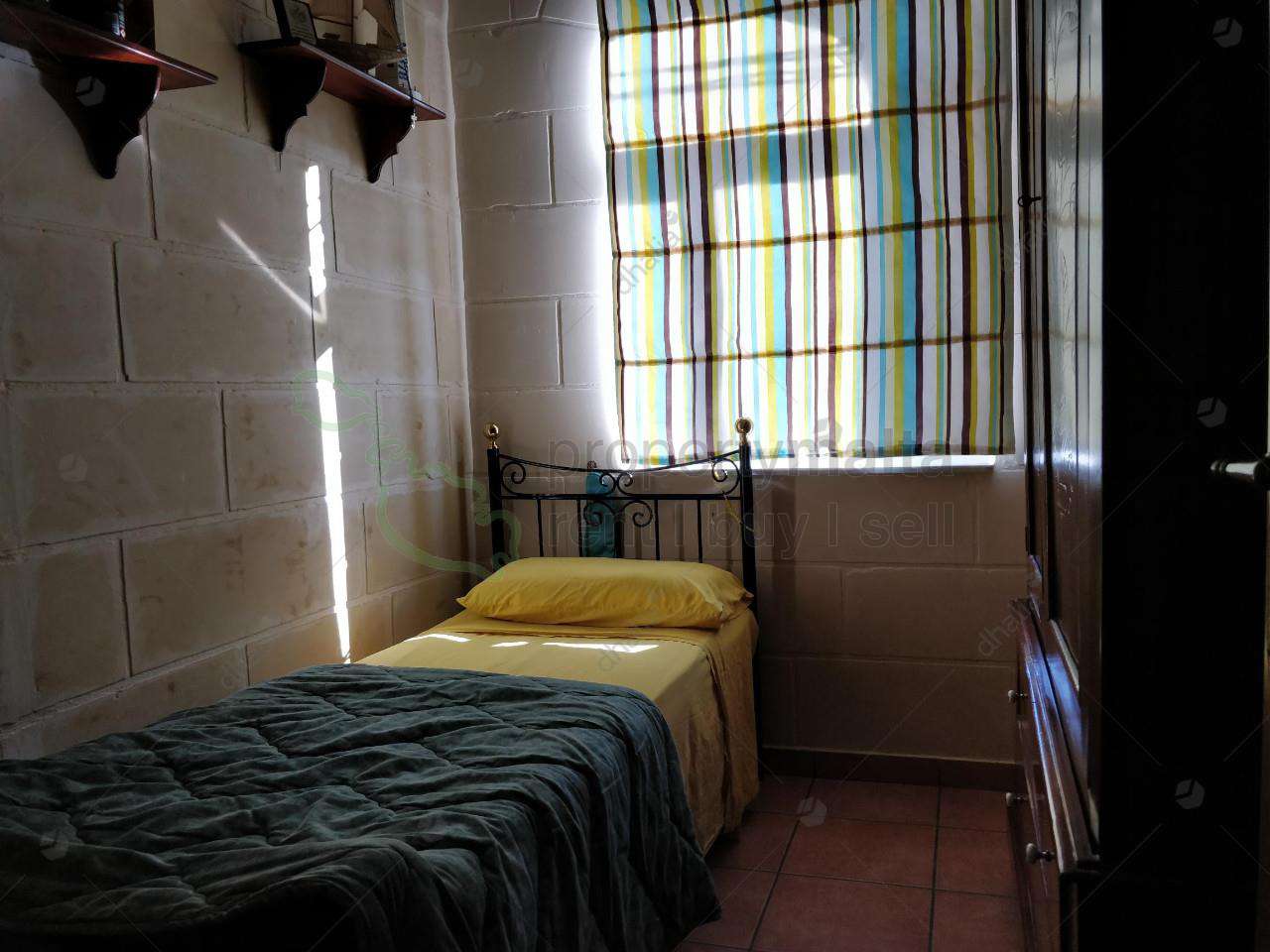 Solitary maisonette located in a quiet residential area in Ghaxaq, close to all amenities. The property has a private entrance and consists of a kitchen/dining area with a small balcony, bathroom with bath and another bathroom with shower, two double bedrooms and a single bedroom. A staircase leads to a laundry room and a large private roof. Offered fully equipped and pet friendly.