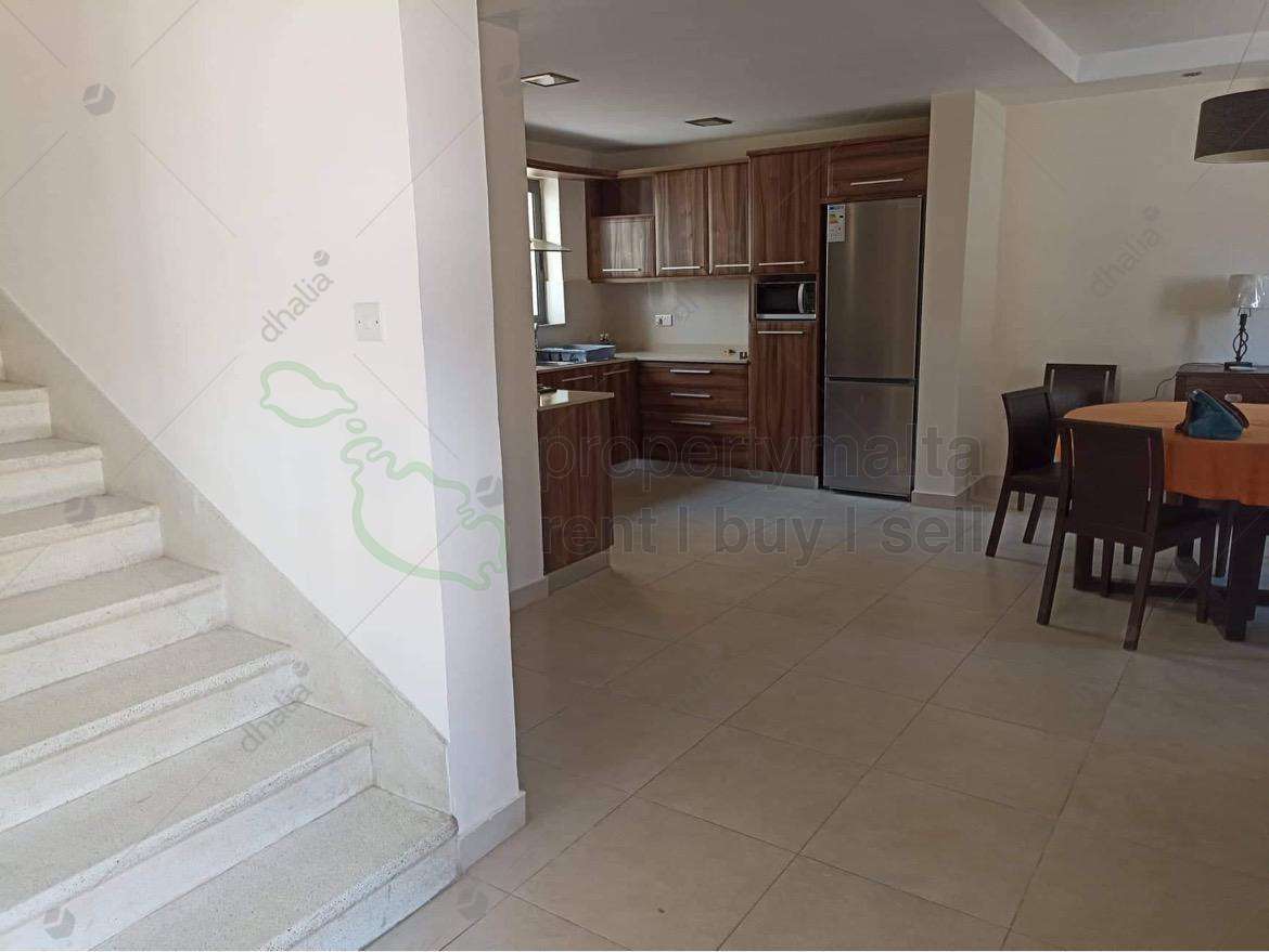 Corner three bedroom terraced house available for long let having some lovely country views from its balcony and windows as well as a very attractive front garden.