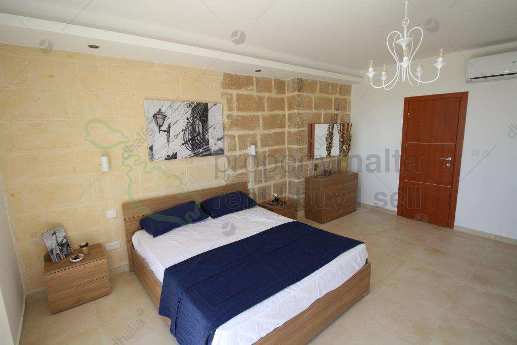 Brand new furnished terraced house, offering spectacular country views and distant sea views of Comino. This terraced house has four double bedrooms, open-plan kitchen/living/dining, large top floor terrace and a garage. Available for long let.