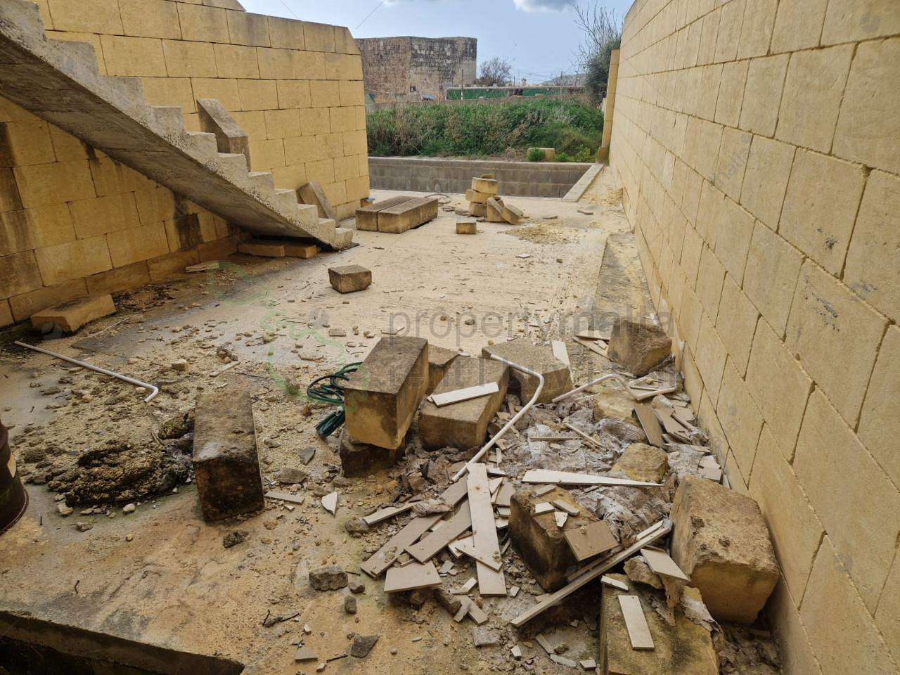 Terraced house in Xewkija, Gozo, boasting stunning country views and ideal for anyone wishing to invest in a guesthouse. This spacious property includes four bedrooms, five bathrooms, a large open-plan kitchen, living, and dining area overlooking a private swimming pool and garden. Additional features include a separate studio apartment at ground floor level and an interconnected eight-car garage at the basement level. The house will be sold partly finished with some apertures installed, partly laid out tiles and some bathrooms purchased but not installed. Viewing is highly recommended.