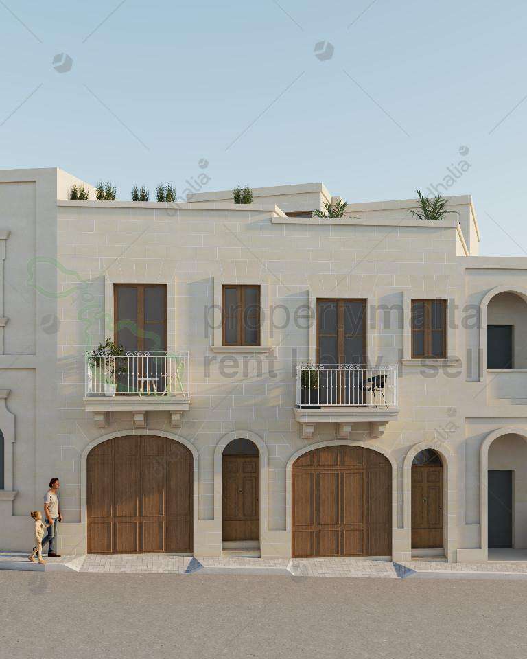 New to the market is this terraced house located in the quaint village of Sannat. This home features a combined kitchen, dining, and living room, four bedrooms, and four bathrooms. It also includes a private pool with a good-sized decking and outdoor area. Additionally, there is a one-car garage at street level. An optional fifth bedroom or a washroom can be added at the roof level. The property is being offered in shell form, presenting a great opportunity for first-time buyers