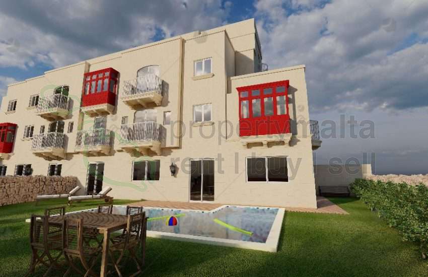 New on the market is this terraced house located in a peaceful area in Xaghra. The ground floor consists of two double bedrooms and a main bathroom. On the first floor, one can find an open plan kitchen/dining/living room, a common bathroom and a large front terrace. A third bedroom with ensuite facility and another terrace are found on the second floor. complementing this unique property is a lock up garage at basement level. Highly recommended!