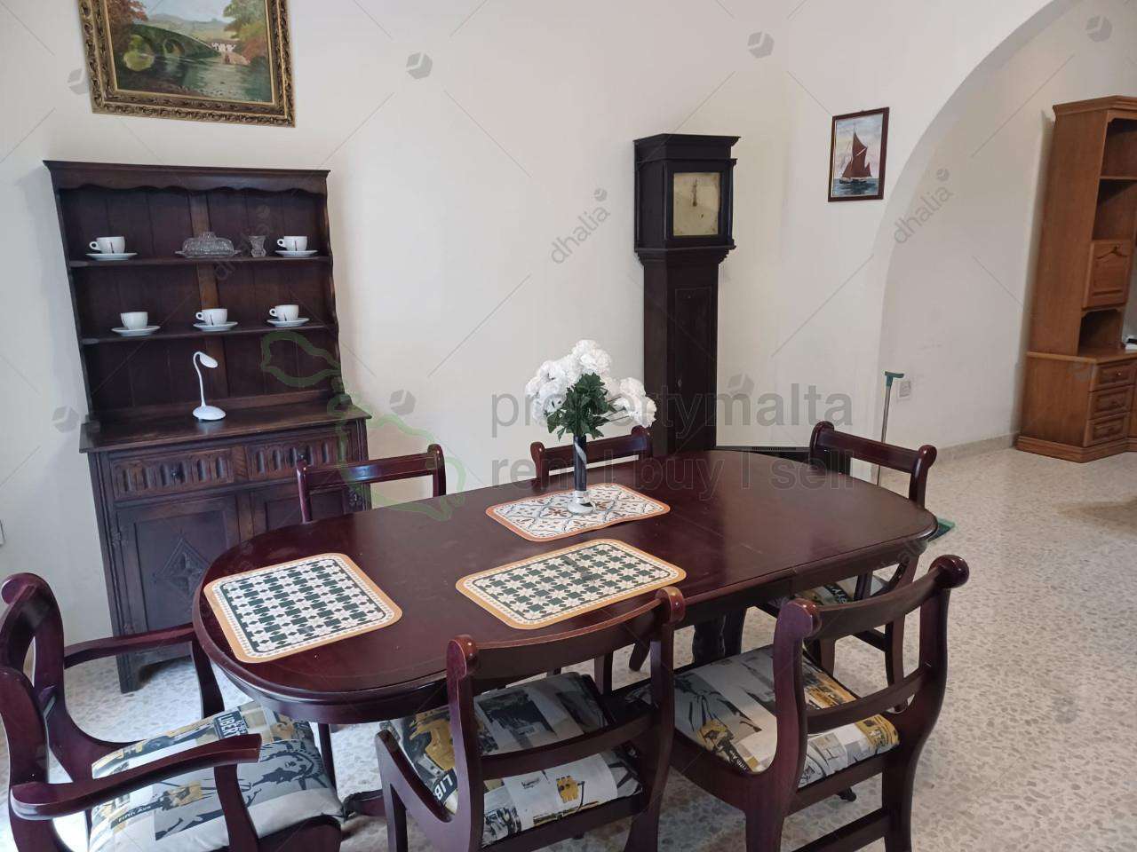 A wide-fronted terraced house located in a quiet residential area of Marsascala. The house is composed of a kitchen/dining/living area and includes three bedrooms with two bathrooms and a washroom. The property comes with its own roof space as well as a street-level garage.
