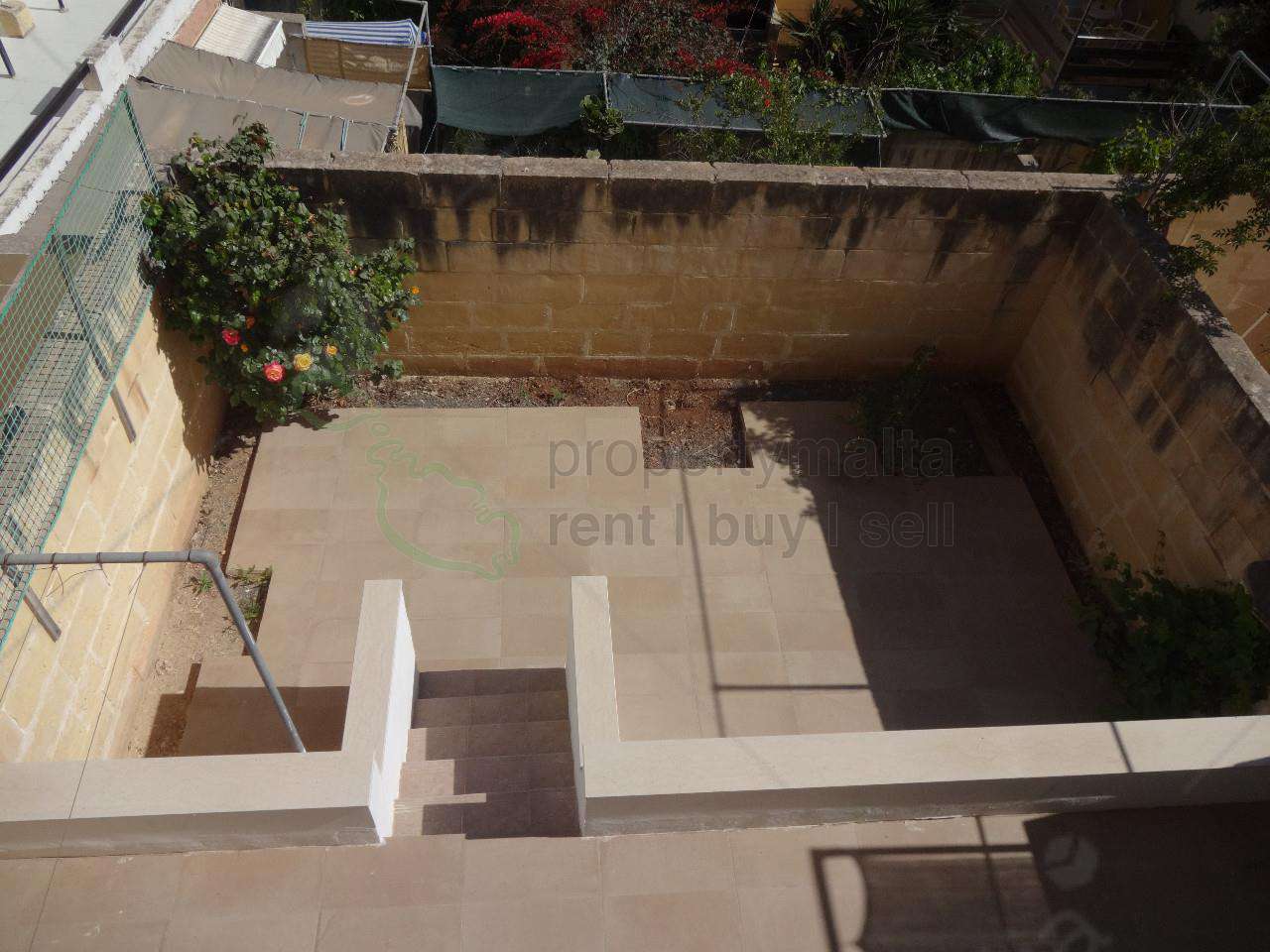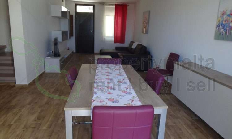 Three-bedroom terraced house in Marsascala with front garden and backyard. Ideal for entertaining and in a quite residential area. One-car lock-up garage is included.