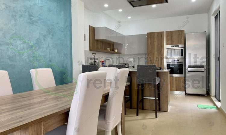 Luxurious, three-bedroom terraced house situated in a tranquil part of Mellieha. The property consists of an entrance hall, on the ground floor level leading to a living room, an open-plan kitchen/dining/ area, a shower room, a courtyard, and an entrance to the attached garage. On the first floor one finds, three bedrooms, a bathroom, and a separate toilet. On the second floor, there is a laundry area and full use of the roof area.