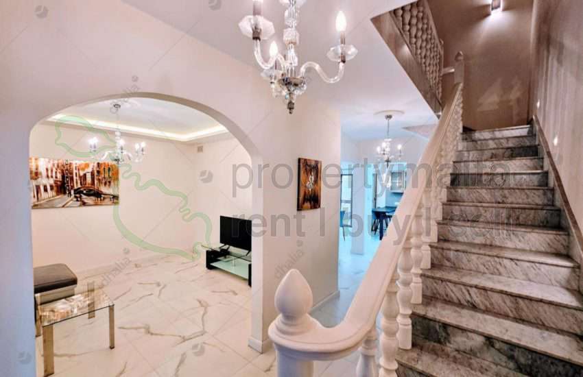 A larger-than-normal, beautiful, spacious four-bedroom family home situated in a lovely quiet part of Mellieha. On the first floor, one finds a study/living area, three double bedrooms, a single bedroom, and a bathroom. On the second floor is a combined kitchen (with dishwasher) living/dining area, a laundry, and a shower room. On the third floor, one finds a very large roof area ideal for barbecues, a spare room for guests, a box room, and another balcony. Definitely worth viewing!
