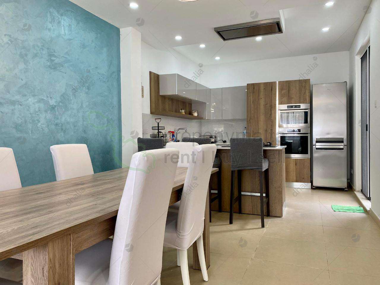 Luxurious, three-bedroom terraced house situated in a tranquil part of Mellieha. The property consists of an entrance hall, on the ground floor level leading to a living room, an open-plan kitchen/dining/ area, a shower room, a courtyard, and an entrance to the attached garage. On the first floor one finds, three bedrooms, a bathroom, and a separate toilet. On the second floor, there is a laundry area and full use of the roof area.