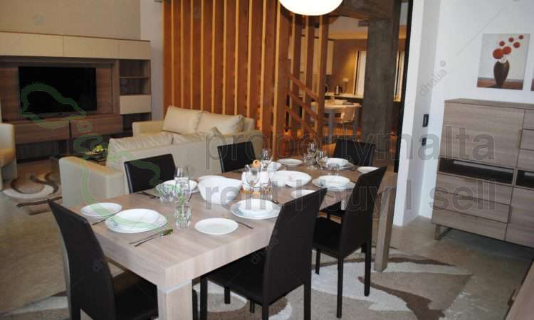 Luxury two to three bedroom Terraced House situated in the heart of Tigne Point. Property consists of an open plan kitchen/living/dining area overlooking the piazza. One main bedroom with ensuite, second bedroom and a bathroom. The third room can be converted to a single bedroom or a study room. Private roof and one car garage included.