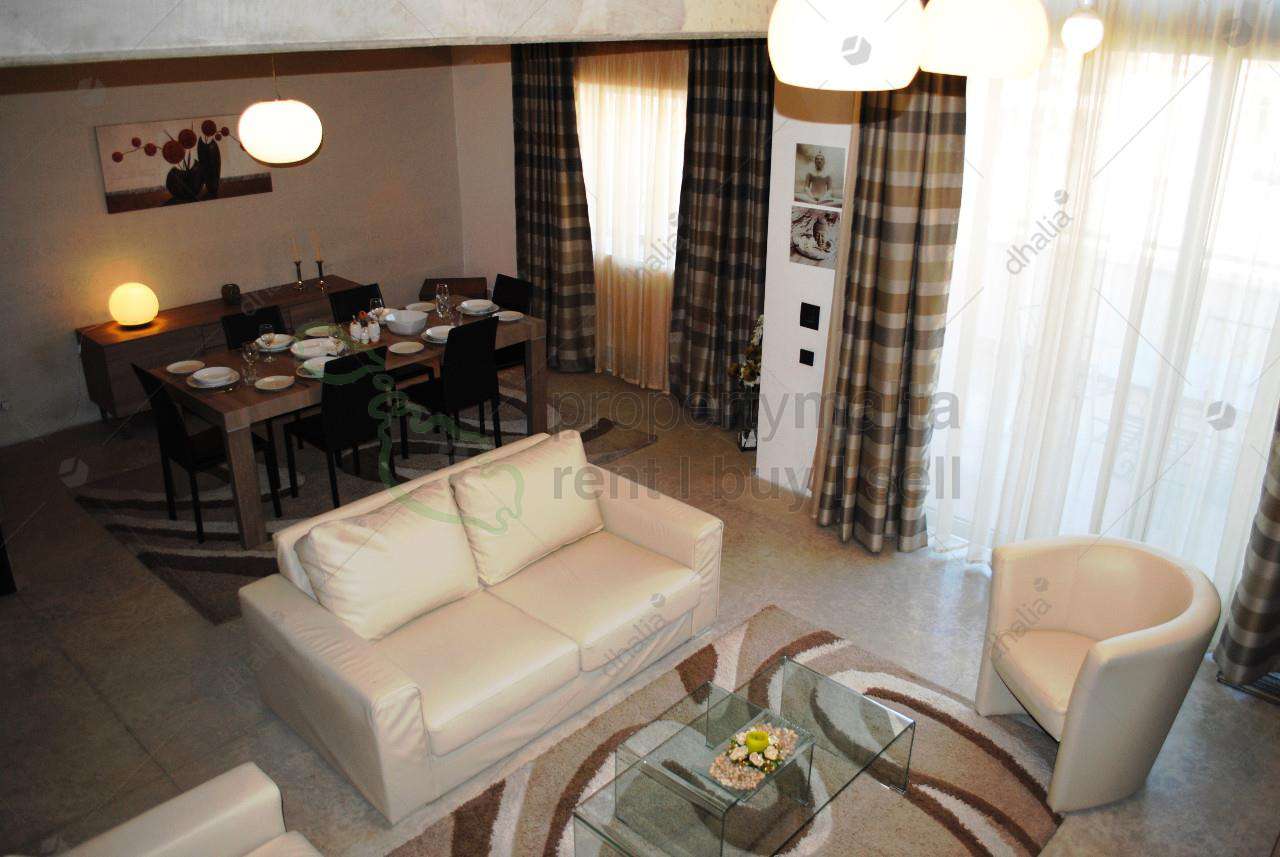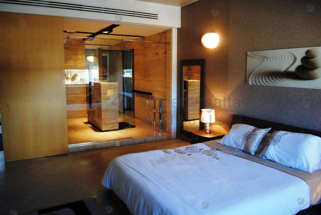 Luxury two to three bedroom Terraced House situated in the heart of Tigne Point. Property consists of an open plan kitchen/living/dining area overlooking the piazza. One main bedroom with ensuite, second bedroom and a bathroom. The third room can be converted to a single bedroom or a study room. Private roof and one car garage included.