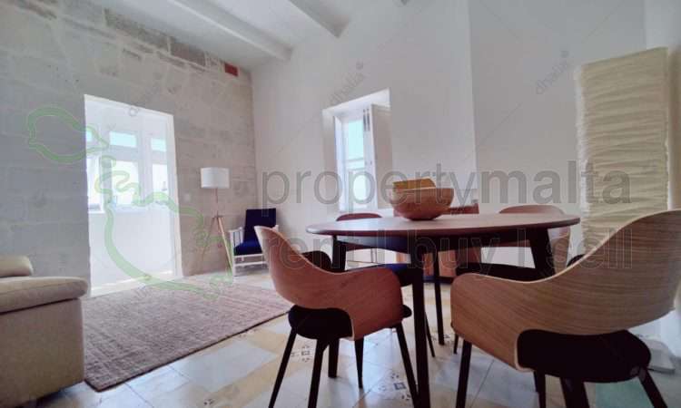 Recently renovated townhouse located three minutes walk from the AUM university and Valletta ferry. The property consists of a nice welcoming hallway on the ground floor. On the first floor, one finds an office/study room, on the second-floor kitchen, a living/dining with a traditional Maltese balcony, a bedroom with a balcony as well, and an ensuite. On the top floor is a laundry room and own private roof with sea views. Fully equipped and air-conditioned. Pet friendly.