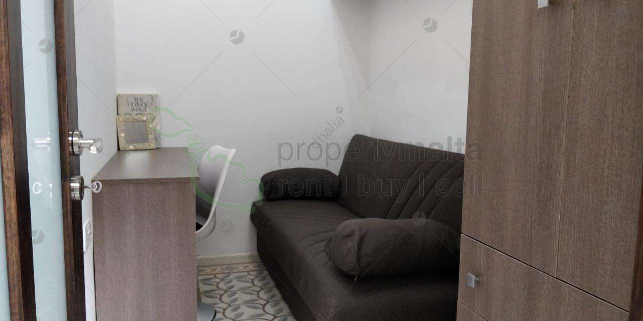 Recently modernized, two-bedroom townhouse located close to all amenities. The layout consists of a living room leading to the dining area, the kitchen, a small internal yard, and a bathroom. The first floor consists of a study room with a sofa bed, a double bedroom with a shower ensuite, and another double bedroom with a small terrace. The property is being offered fully equipped.