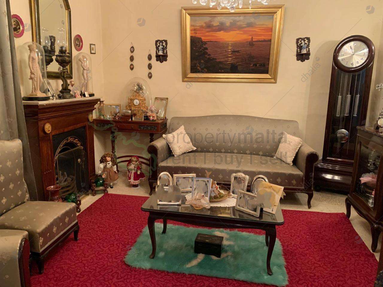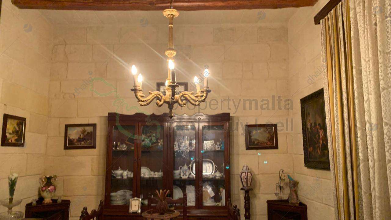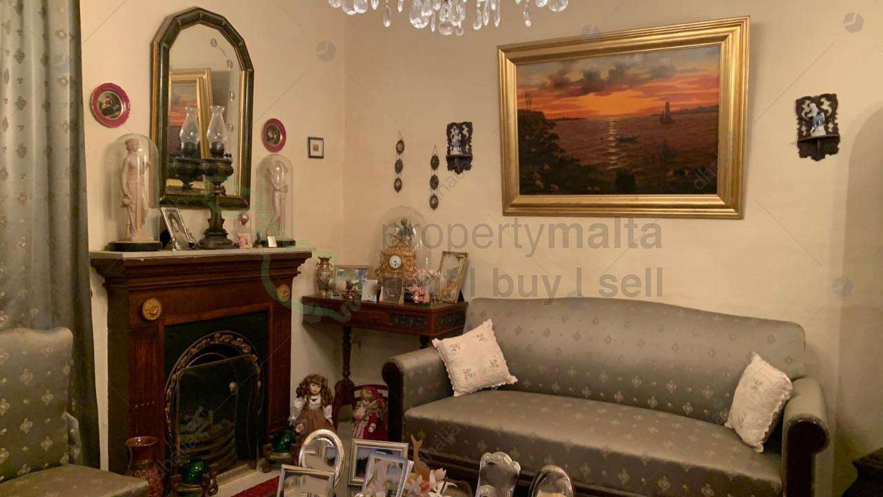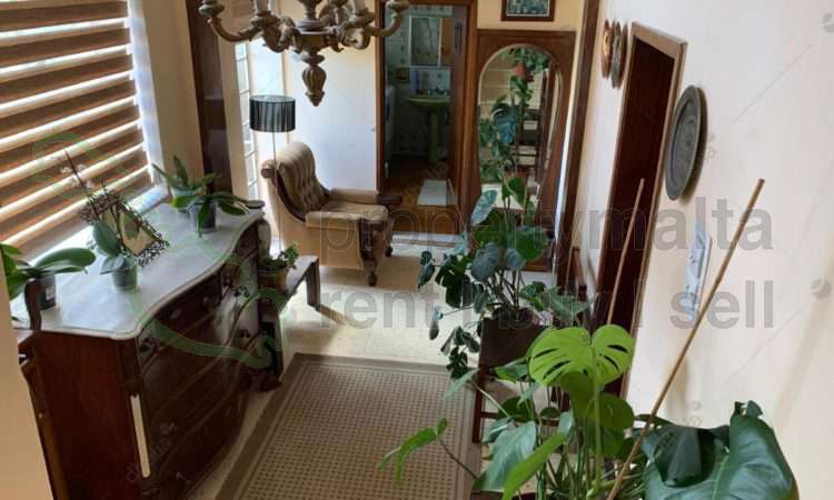 A beautiful, typical Maltese townhouse with an imposing facade in good structural condition, with a small one-car garage sufficient for a private parking space. The house consists of an entrance hall, two lateral rooms on each side as dining and sitting rooms, two double and one single bedrooms, a kitchen, a spare toilet, a bathroom and a spacious backyard with mature front trees. The property is freehold, built on a plot area of 175 square metres. Full roof with nice views. Also features a cellar interconnected to the garage.