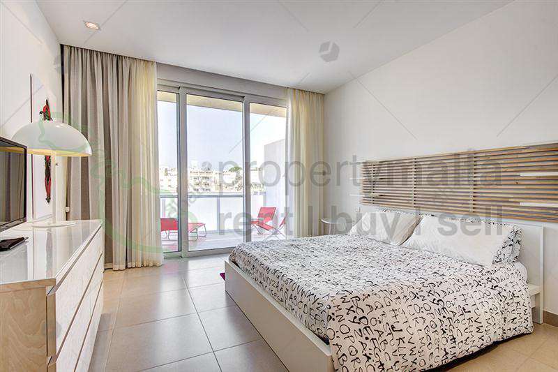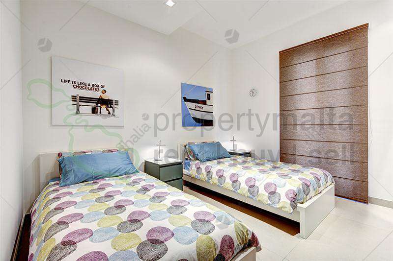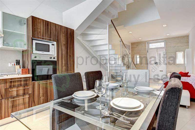 Luxurious, one of a kind designer-furnished townhouse, conveniently situated seconds away from Spinola bay in the heart of St Julian’s. Accommodation comprising a welcoming hallway leading onto a luxury fully equipped kitchen/dining room, a designer steel staircase takes you up to two double bedrooms main with bathroom en-suite, and on the second level one finds a further double bedroom with another shower en-suite leading to a roof terrace. Property also enjoys a further living room which leads to a lovely outdoor terrace ideal for BBQ and outside dining. Property is also complimented with a good sized back yard. Finishes include three LCD TV units, solar water heaters, inverter technology air-conditioning system throughout, double glazing, insect screens and much more. Not to be missed!