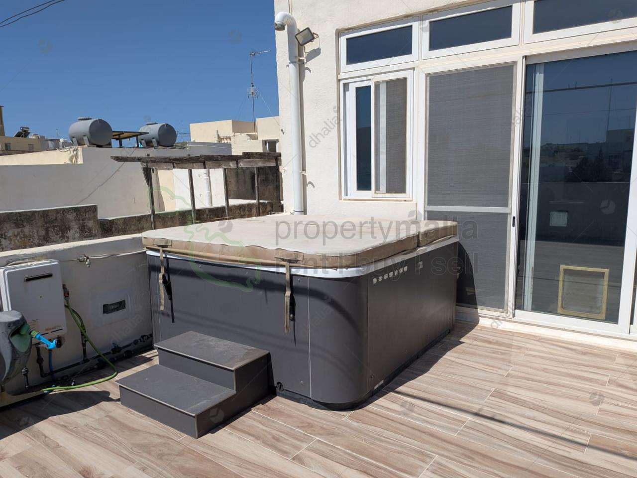 A fully converted townhouse, located in the urban conservation area of Tarxien and close to all amenities, offering modern comforts in a traditional property, which is ideal for a growing family. On entering the property, one is greeted by a bright and spacious living room leading to a well-lit kitchen and dining area, a main bathroom, a storage room, and a backyard with a well. On the first floor, you’ll find two double bedrooms with the master leading to a balcony and an ensuite. A third room is currently used as storage and a back terrace. At roof level, the property offers a utility/toilet room, a full-size kitchen leading to a spacious front terrace complete with a jacuzzi. The home is being sold fully furnished and also includes 14 solar panels with Tesla batteries, three air-conditioning units, a gas fireplace and intercoms on every floor. This property is freehold.